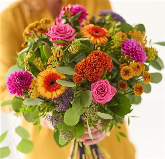 A beautiful combination of classic autumnal colours carefully selected by our team of florists. Perfect to brighten up any home as the days shorten.