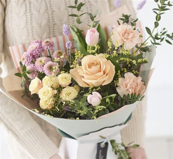 A beautiful mix of pastel spring flowers, carefully selected by our team of florists.