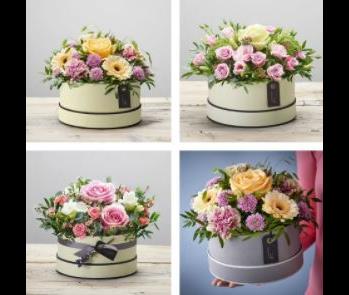 Please note that this is a florist choice arrangement, and the flowers and hat box colour used may vary from that pictured.